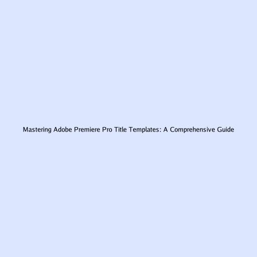 Mastering Adobe Premiere Pro Title Templates: A Comprehensive Guide