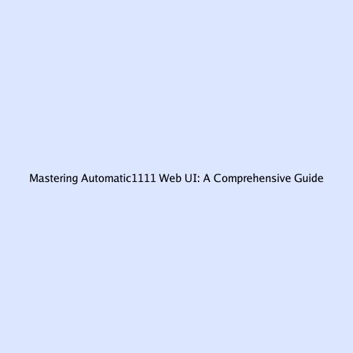 Mastering Automatic1111 Web UI: A Comprehensive Guide