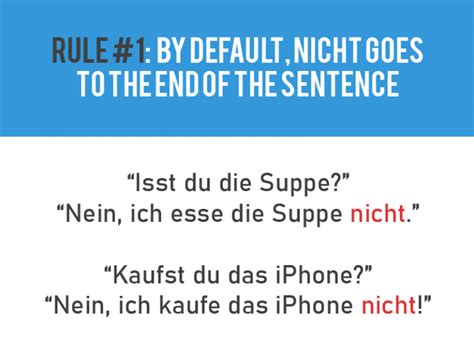 So, what are the key takeaways, my friends? First, nicht is your general-purpose “not,” capable of negating verbs, adjectives, adverbs, proper nouns, and definite nouns. Its placement is flexible, typically going before the word it negates for adjectives, adverbs, and specific phrases, but often moving to the end of the clause when negating the entire verb action. Second, and crucially, never confuse nicht with kein . Kein is the specialist, exclusively negating indefinite nouns (meaning “no” or “not a/an”). Keeping these two distinct in your mind is paramount for accuracy.
