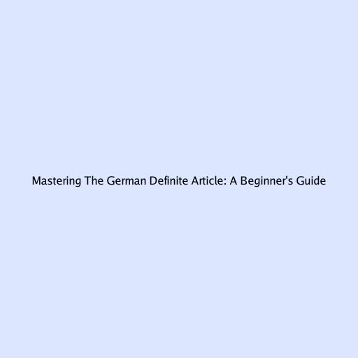Mastering the German Definite Article: A Beginner’s Guide