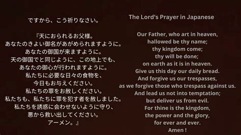 The translation and use of the Lord’s Prayer in Japanese reflect the broader trend of integrating Christian beliefs and practices within Japanese culture. While the core message of the prayer remains unchanged, the specific wording and context can take on unique meanings. The choice of words, the way the prayer is used, and the cultural understanding of the prayer can vary across different denominations and local communities. This adaptation enables Christians in Japan to express their faith in a way that is both authentic and meaningful within their cultural landscape.