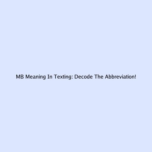 MB Meaning In Texting: Decode The Abbreviation!