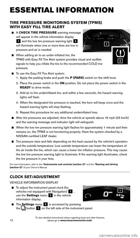 Nissan Leaf 2016 Tyre Pressure Guide