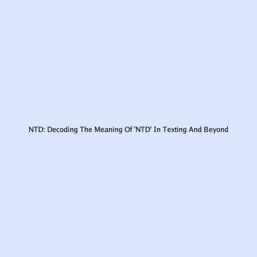NTD: Unpacking the Meaning of ‘NTD’ in Texting and Beyond