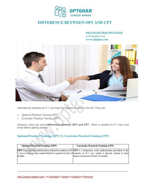 Okay, now let’s talk about CPT, or Curricular Practical Training . Unlike OPT, CPT is all about integrating work experience into your academic curriculum. Think of it as a structured way to gain practical skills related to your field of study while you’re still in school. It’s designed to give you a head start, allowing you to apply classroom knowledge to real-world scenarios before you even graduate. CPT can take many forms: internships, cooperative education programs (co-ops), or other types of practical training. The key is that it must be an integral part of your academic program. That means your school’s curriculum must require or offer CPT opportunities. CPT offers two main types of training: part-time and full-time . Part-time CPT allows you to work for 20 hours or less per week, while full-time CPT allows you to work more than 20 hours per week. The specific requirements and available options will vary depending on your school and program, so it’s super important to understand the guidelines. Now, let’s explore the nuances.