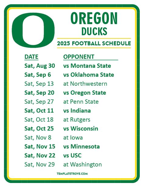 We’ll be looking at the conference matchups , which are always intense, and the non-conference games that often bring their own unique challenges and rivalries. Think about those early season tests that set the tone for the entire year, and the late-season battles that could determine playoff or championship aspirations. The coaching staff is always working hard to prepare the team, but as fans, our preparation involves marking these dates in bold and getting ready for the roar of the crowd. So, grab a coffee, settle in, and let’s break down the 2025 Oregon Ducks football schedule piece by piece. Get ready to feel the excitement and the passion that only Duck football can bring!