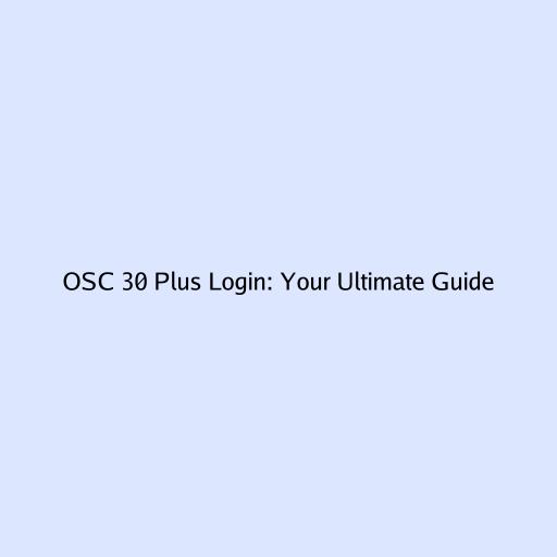 OSC 30 Plus Login: Your Ultimate Guide
