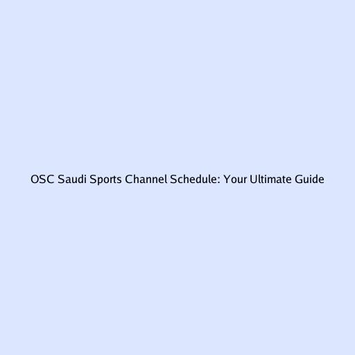 OSC Saudi Sports Channel Schedule: Your Ultimate Guide