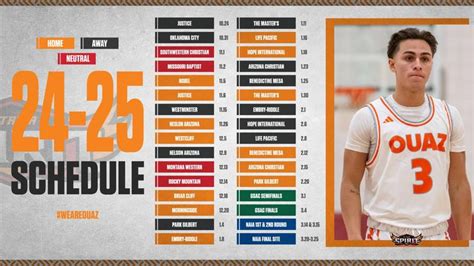 So, what’s the OUAZ men’s basketball schedule all about? It’s more than just a list of dates and times; it’s a roadmap to the season’s triumphs and challenges. The OUAZ Spirit navigates a demanding schedule, facing a mix of conference rivals and non-conference opponents. Each game presents an opportunity for the team to showcase their skills, build chemistry, and work towards their ultimate goal: success in the GSAC (Golden State Athletic Conference) and beyond. Understanding the schedule helps fans plan their attendance, whether it’s for home games at the university’s arena or road trips to cheer on the team. We’ll be looking at the full slate of games, paying special attention to when the Spirit are playing at home, as those are the best opportunities for the local community and student body to come out and show their support. Keep an eye out for any special promotional games or events that the university might host throughout the season; these often add an extra layer of excitement to the usual game day experience.