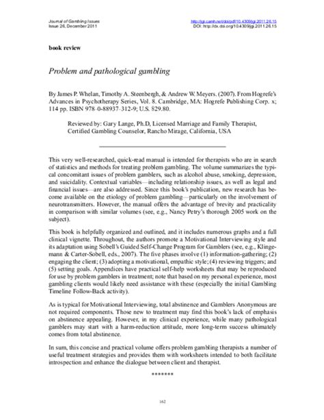 Treatment and Recovery Options for Pathological Gambling