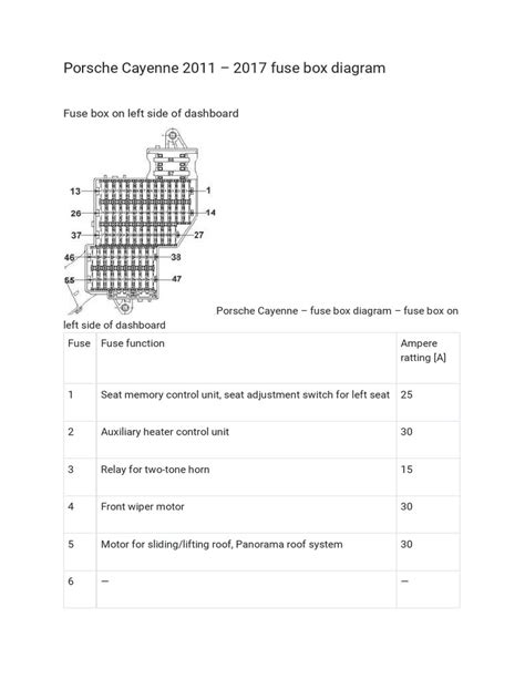 Porsche Cayenne 2012 Fuse Box Diagram: A Detailed Look
