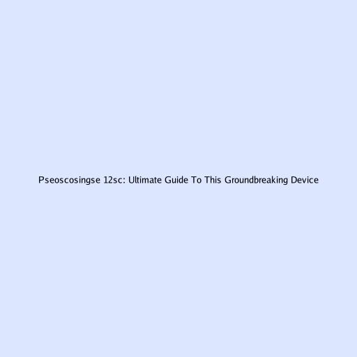 Pseoscosingse 12sc: Ultimate Guide To This Groundbreaking Device
