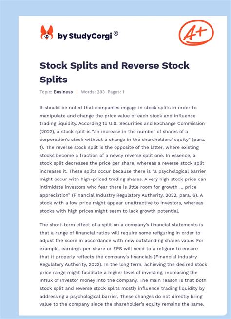 Alright, so what exactly is a reverse stock split, and how does it work? Put simply, a reverse stock split is when a company reduces the total number of its outstanding shares. This isn’t the same as a stock split, where a company increases the number of shares (think of it like cutting the pie into more slices, but the total pie size stays the same). In a reverse split, a company might say, “Hey, we’re going to take every ten shares you own and give you one new share.” So, if you had 100 shares, you’d end up with 10. But here’s the kicker: the price of each share is generally supposed to increase proportionally. If your shares were trading at \(1 each before the 1-for-10 reverse split, they'd theoretically trade at around \) 10 after the split. But, how does it really works? Well, usually, companies announce a reverse split and set a ratio, like 1-for-5, 1-for-10, or even more drastic ratios. This ratio determines how many old shares are combined into one new share. If a company has a low stock price, it may not meet the listing requirements of the stock exchanges, and reverse stock splits can help boost the price to comply. They can also make the stock more attractive to institutional investors, who sometimes shy away from penny stocks. But, why do companies do this? The reasons can vary, and we’ll get into that a bit later. But just remember, the core concept is consolidating shares to increase the price per share.