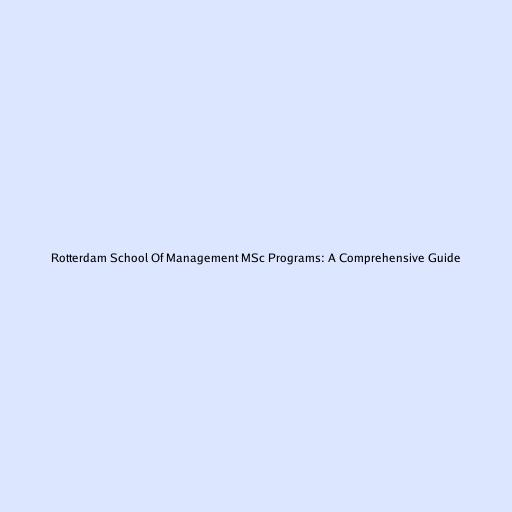 Rotterdam School Of Management MSc Programs: A Comprehensive Guide