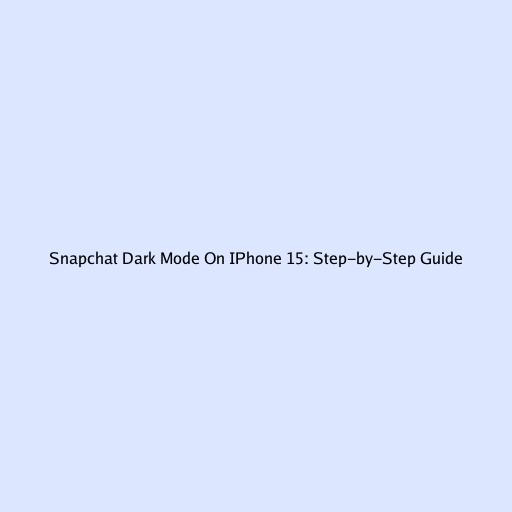 Snapchat Dark Mode On IPhone 15: Step-by-Step Guide