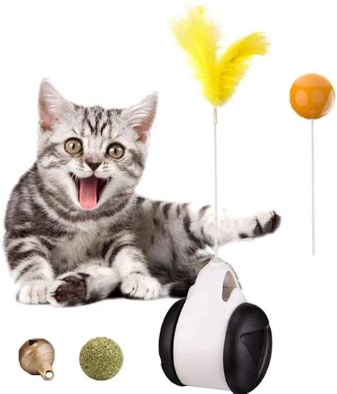 Kattenkruid speeltjes zijn ook altijd een hit. Muizen, balletjes, of andere vormen gevuld met kattenkruid kunnen je kat urenlang bezighouden. De geur van kattenkruid stimuleert speelsheid en kan zelfs de meest slaperige kat opvrolijken. Let wel op: niet elke kat reageert op kattenkruid. Een ander type speelgoed dat goed werkt, zijn de ‘smart toys’ of interactieve voederpuzzels. Dit zijn speeltjes waar je brokjes in kunt stoppen, en je kat moet moeite doen om ze eruit te krijgen. Dit simuleert het foerageren en houdt hun geest scherp, terwijl ze ook nog eens beloond worden met eten. Perfect voor katten die graag zelfstandig spelen.