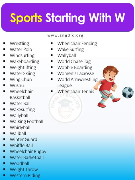 So there you have it, guys! We’ve explored just a handful of the incredible sports that start with W . From the ancient combat of wrestling to the high-flying action of ski jumping, these sports offer a diverse range of challenges, skills, and thrills. It’s easy to get caught up in the mainstream sports, but don’t forget about these fantastic ‘W’ sports. They represent dedication, athleticism, and the sheer joy of competition in unique and exciting ways. Whether you’re looking to compete, spectate, or just learn something new, there’s a whole world of ‘W’ sports out there waiting to be discovered. Keep exploring, keep trying new things, and never underestimate the power of a good ‘W’ to kick off an amazing sport!