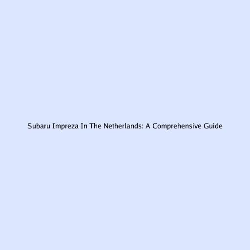 Subaru Impreza In The Netherlands: A Comprehensive Guide