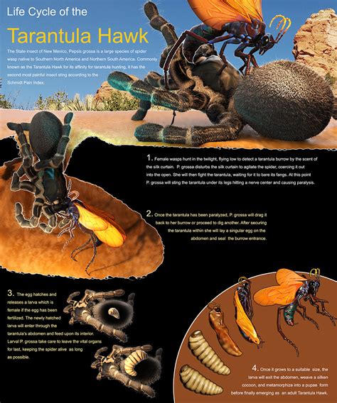 So, how does a tarantula hawk larva come into existence? It all starts with a female tarantula hawk wasp. This isn’t just any wasp; she’s a highly specialized hunter. Once she’s successfully paralyzed a tarantula (a truly impressive feat, by the way – imagine taking down something eight times your size!), she drags it back to her burrow. This burrow is meticulously prepared, often a deep, complex tunnel dug into sandy or firm soil. The female then lays a single egg on the paralyzed tarantula. Yep, you read that right. The tarantula isn’t killed immediately; it’s kept alive, acting as a fresh, albeit immobile, larder for the developing larva. The egg hatches within a few days, and out pops the first instar larva. At this stage, the tarantula hawk larva is tiny, pale, and legless, essentially a grub. Its sole purpose is to eat. And it starts eating the least vital parts of the tarantula first – the non-essential organs and appendages. This is a survival strategy; by not immediately destroying the vital organs, the wasp ensures a longer-lasting food source for its offspring. This parasitic relationship is a cornerstone of the tarantula hawk’s life cycle, and the larva is at the heart of this remarkable survival tactic. It’s a brutal but effective method, showcasing the raw power of natural selection and the complex strategies insects employ to ensure the continuation of their species. The initial meal is critical, providing the energy the larva needs to grow and molt into subsequent instars, each larger and more capable of consuming its host.