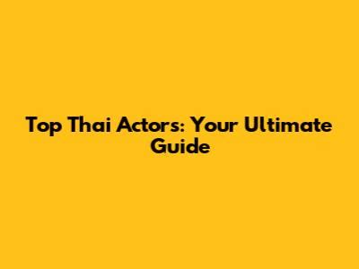 Top Thai Actors: Your Ultimate Guide