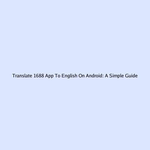 Translate 1688 App to English on Android: Your Ultimate Guide