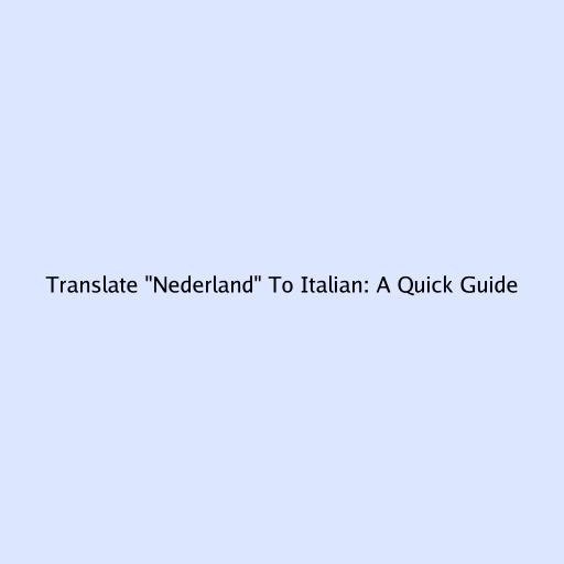 Translate “Nederland” to Italian: A Quick Guide