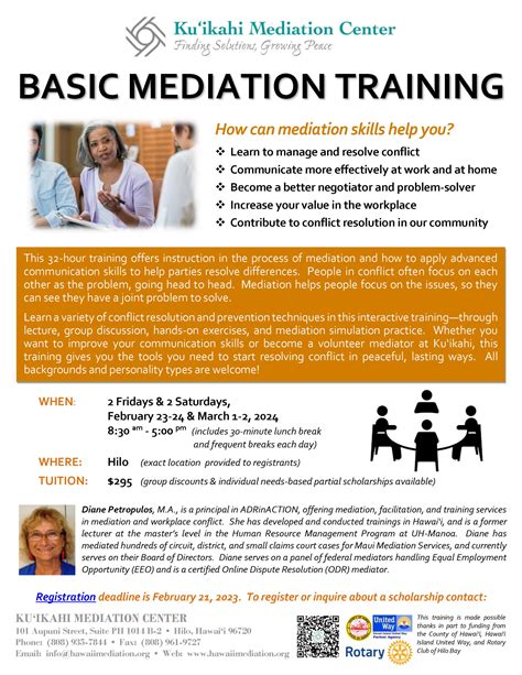 - Prepare in Advance: Before the training starts, familiarize yourself with the basic concepts of mediation and conflict resolution. This can help you hit the ground running and make the most of the training sessions. This could involve reading articles, watching videos, or taking introductory courses on conflict resolution.