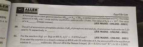 Where PA, PB, and PAB2 are the partial pressures of A, B, and AB2 at equilibrium, respectively. A large Kp indicates that the equilibrium lies to the right, favoring the formation of AB2. A small Kp indicates that the equilibrium lies to the left, favoring the reactants. Understanding the equilibrium constant is crucial for predicting the extent to which a reaction will proceed and for optimizing reaction conditions to maximize the yield of the desired product. Factors such as temperature and pressure can affect the equilibrium position, so it’s important to consider these factors when designing a chemical process.