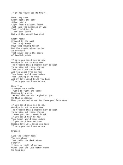 Beyond the chords and strumming, let’s dive into the heart of “If You Could See Me Now” : the lyrics and the emotion they convey. This song is more than just a collection of notes; it’s a story, a feeling, a moment captured in time. Understanding the lyrics is crucial to connecting with the song and conveying its meaning to your audience. The lyrics of “If You Could See Me Now” often reflect themes of longing, memory, and a deep sense of connection. Spend some time really listening to the words. What story is the song telling? What feelings are being expressed? What images are being created? Think about the message behind the song. Consider the emotions that are being communicated, such as joy, sorrow, love, and loss. Allow yourself to feel the emotions that the song evokes. Think about the context of the song. When was it written? Who wrote it? What was happening in the world at the time? All of these factors can influence the meaning of the song. Consider the intended audience. Who was the song written for? What message was the artist trying to convey? By delving into the lyrics and their meaning, you can gain a deeper understanding of the song and make your playing more meaningful. Try to sing the song from your heart and let the emotion of the lyrics guide your performance. The more connected you are to the message, the more effectively you will be able to share it with your audience. Remember, music is a powerful tool for expressing emotions. Embrace the emotional depth of the lyrics and let them inspire your playing of “If You Could See Me Now.” This will create a truly unforgettable experience for you and your listeners.