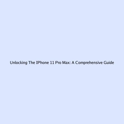 Unlocking the iPhone 11 Pro Max: A Comprehensive Guide