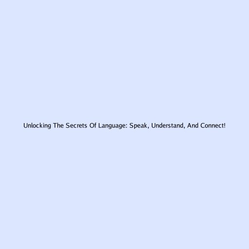 Unlocking The Secrets Of Language: Speak, Understand, And Connect!