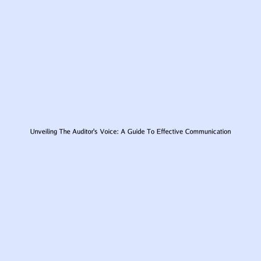 Unveiling The Auditor's Voice: A Guide To Effective Communication