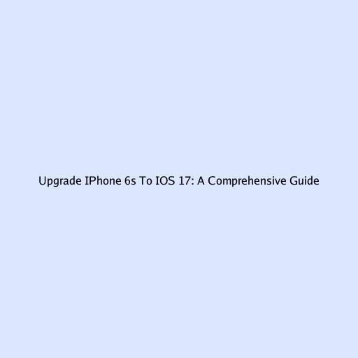 Upgrade IPhone 6s To IOS 17: A Comprehensive Guide