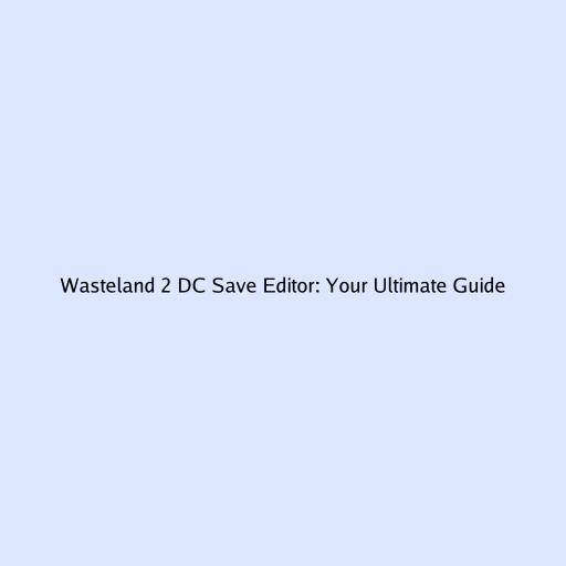 Wasteland 2 DC Save Editor: Your Ultimate Guide