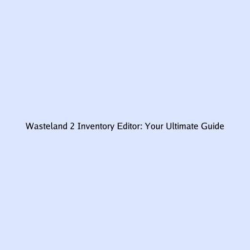 Wasteland 2 Inventory Editor: Your Ultimate Guide