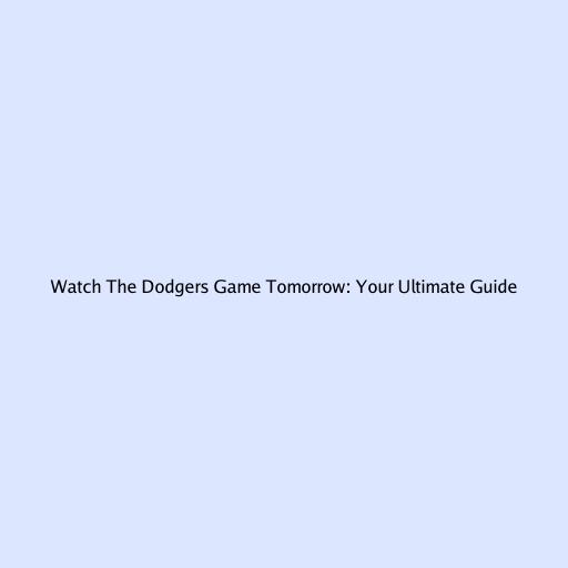 Watch the Dodgers Game Tomorrow: Your Ultimate Guide