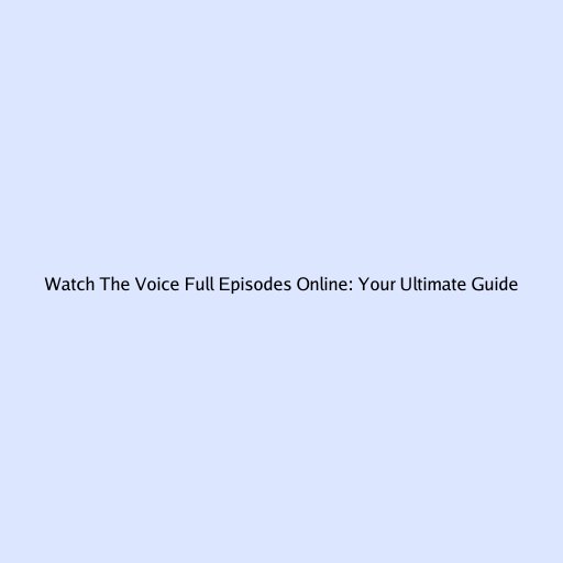 Watch The Voice Full Episodes Online: Your Ultimate Guide