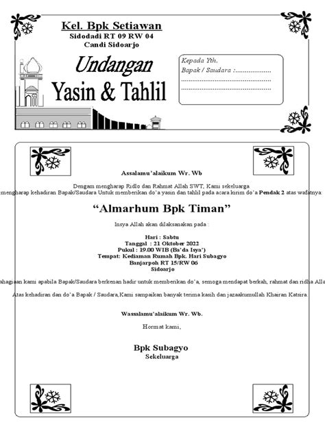 Now, let’s shift gears and talk about Tahlil . This is a practice that often goes hand-in-hand with reciting Surah Yasin. Basically, Tahlil is the collective remembrance of God, often involving the recitation of specific phrases like ‘La ilaha illallah’ (There is no god but Allah) and other supplications. It’s usually done in a group setting, which adds a powerful sense of community and shared devotion. Think of it as a spiritual gathering where people come together to focus on God, seek forgiveness, and offer prayers for themselves, their families, and especially for the departed. It’s common to see Tahlil sessions held during significant times, such as after a funeral, on the anniversary of someone’s death, or during special Islamic months like Ramadan or Muharram. The idea behind it is that when a group of believers comes together with sincere intentions, their collective prayers and remembrance carry even greater weight and blessings. It’s a way of strengthening the bond between the living and those who have passed on, sending them spiritual nourishment through prayers and good deeds. The repetition of phrases like ‘La ilaha illallah’ isn’t just monotonous chanting; it’s a form of dhikr, a spiritual exercise that helps to purify the heart, focus the mind, and increase one’s consciousness of God. Each recitation is like a small act of worship, a reaffirmation of faith, and a humble offering to the Divine. The communal aspect also fosters a sense of solidarity and mutual support among the participants, creating an atmosphere of shared faith and spiritual upliftment. It’s a beautiful expression of how faith can bring people together in meaningful ways, transcending individual concerns and focusing on the collective spiritual well-being.