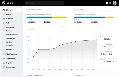 Once you’ve successfully logged in, you’ll be greeted by the Zoho Books dashboard. This is your central hub for managing your accounting tasks. Here’s a quick overview of the main sections: